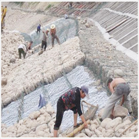 雷諾護(hù)墊是指金屬網(wǎng)面構(gòu)成的厚度遠(yuǎn)小于長(zhǎng)度和寬度的墊形工程構(gòu)件,其中裝入塊石等填充料后連接成一體,成為主要用于水利堤防、岸坡、海曼等的防沖刷結(jié)構(gòu),具有柔性、對(duì)地基適應(yīng)性的優(yōu)點(diǎn)。雷諾護(hù)墊是厚度在0.17-0.3m(含0.3m)的網(wǎng)墊結(jié)構(gòu)。主要用作河道、岸坡、路基邊坡護(hù)坡結(jié)構(gòu)。既可防止河岸遭水流、風(fēng)浪侵襲而破壞,又實(shí)現(xiàn)了水體與坡下土體間的自然對(duì)流交換功能,達(dá)到生態(tài)平衡。坡上植綠可增添景觀、綠化效果。