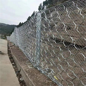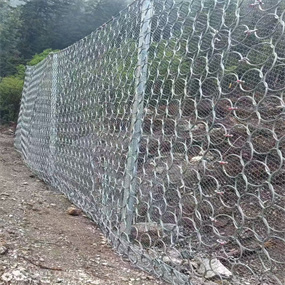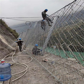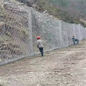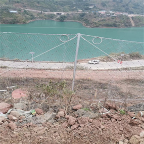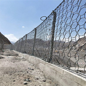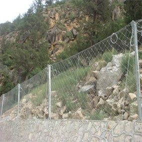 新疆被動(dòng)防護(hù)網(wǎng)是由鋼絲繩網(wǎng)、環(huán)形網(wǎng)、固定系統(tǒng)、減壓環(huán)和鋼柱四個(gè)主要部分構(gòu)成。鋼柱和鋼絲繩網(wǎng)連接組合構(gòu)成一個(gè)整體,對(duì)所防護(hù)的區(qū)域形成面防護(hù),從而阻止崩塌巖石土體的下墜,起到邊坡防護(hù)作用。