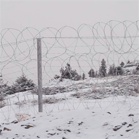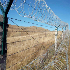 特 點(diǎn):刀片刺網(wǎng)又名刮刀型刺絲,是一種近年發(fā)展起來的防護(hù)、隔離能力較強(qiáng)的新型防護(hù)網(wǎng)產(chǎn)品。鋒利的刀型刺由雙線扣裝后成蛇腹?fàn)?,既美觀又讓人不寒而栗。起到了很好的阻嚇作用。同時該產(chǎn)品具有美觀、防阻效果好、施工便利等優(yōu)點(diǎn)。