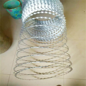 工 藝:它采用鋼板(刀板)沖壓成型包附于熱鍍鋅鋼絲(芯線)之上,由銳利尖角鍍鋅鋼板或不銹鋼薄板做刀片,高張力鋼絲做芯線組合而成的。